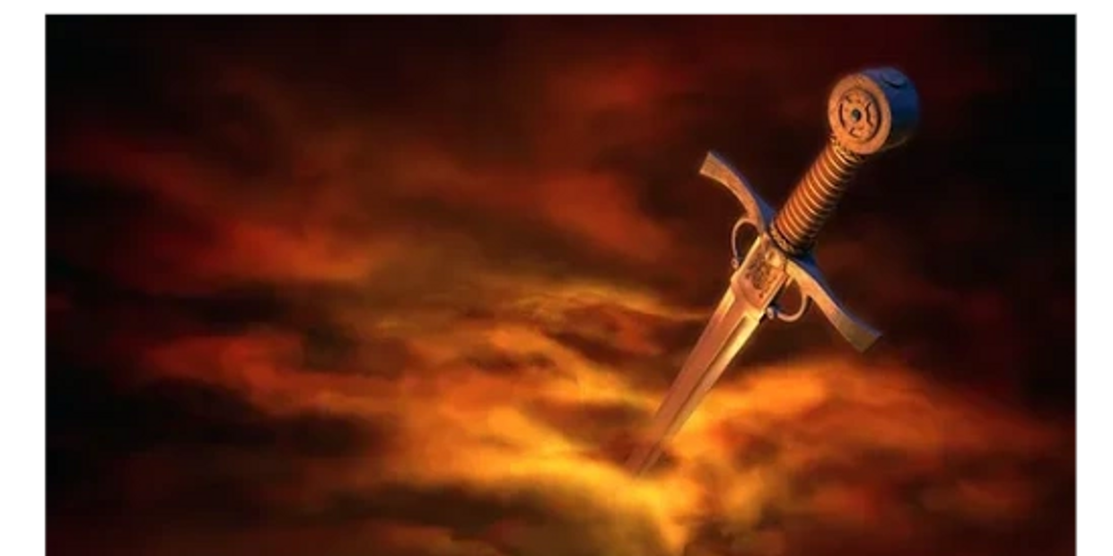 The sword that demonstrates God's majesty, that overcomes all temptations and cleanses us from all iniquities appears again at the end of the age to save us once and for all from the tyranny of the nations who wage war against the LORD and all Believers: